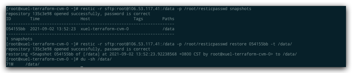 restic -r sftp:[email protected]:/data ls 875a2a32