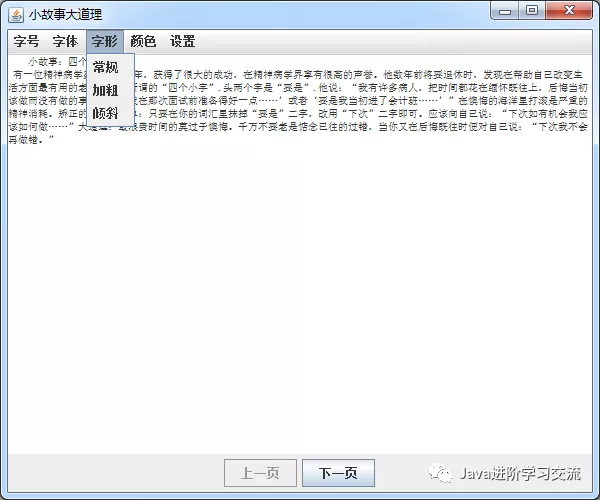 使用eclipse软件开发,先上效果图,如下图所示。可以看到在界面上有可以改变字号、字体、字形、颜色、设置选项的菜单栏,页面切换的功能。