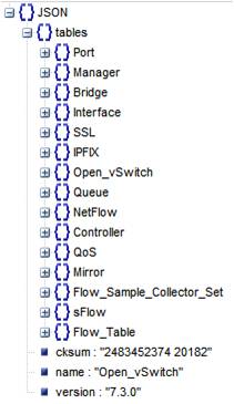 /etc/openvswitch/conf.db是json格式的,可以通过命令ovsdb-client dump将数据库结构打印出来。