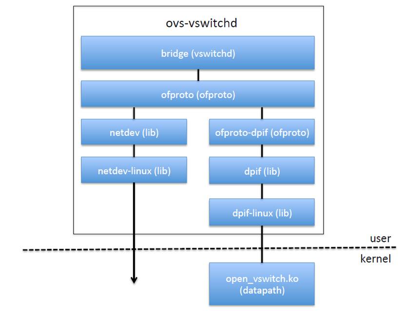 Openvwitch进行数据流交换的主要逻辑都是在ovs-vswitchd和openvswitch.ko里面实现的。