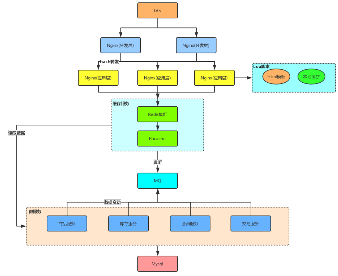 - 一个lua脚本下面加了nginx的本地缓存去渲染这个html模板,nginx本地。lua脚本相对来说比freemark这种快太多了。