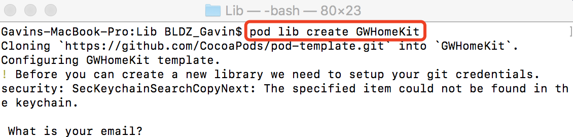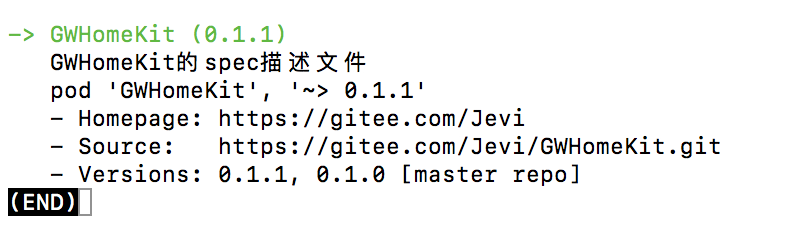 (如:pod spec lint GWHomeKit.podspec)最后使用pod trunk命令,把podspec文件推送到CocoaPod官方库