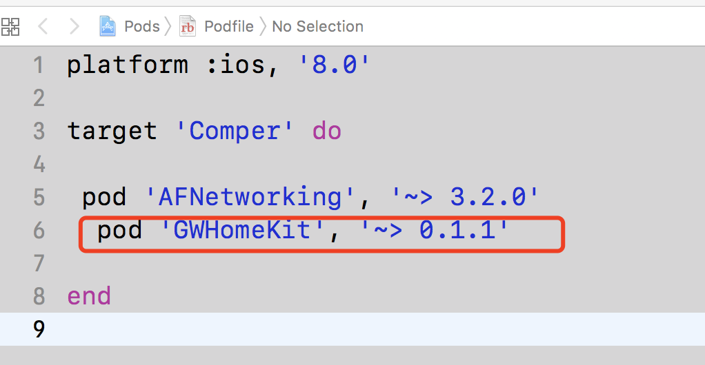 9 删除成功后,再执⾏行行:pod search 'GWHomeKit'。