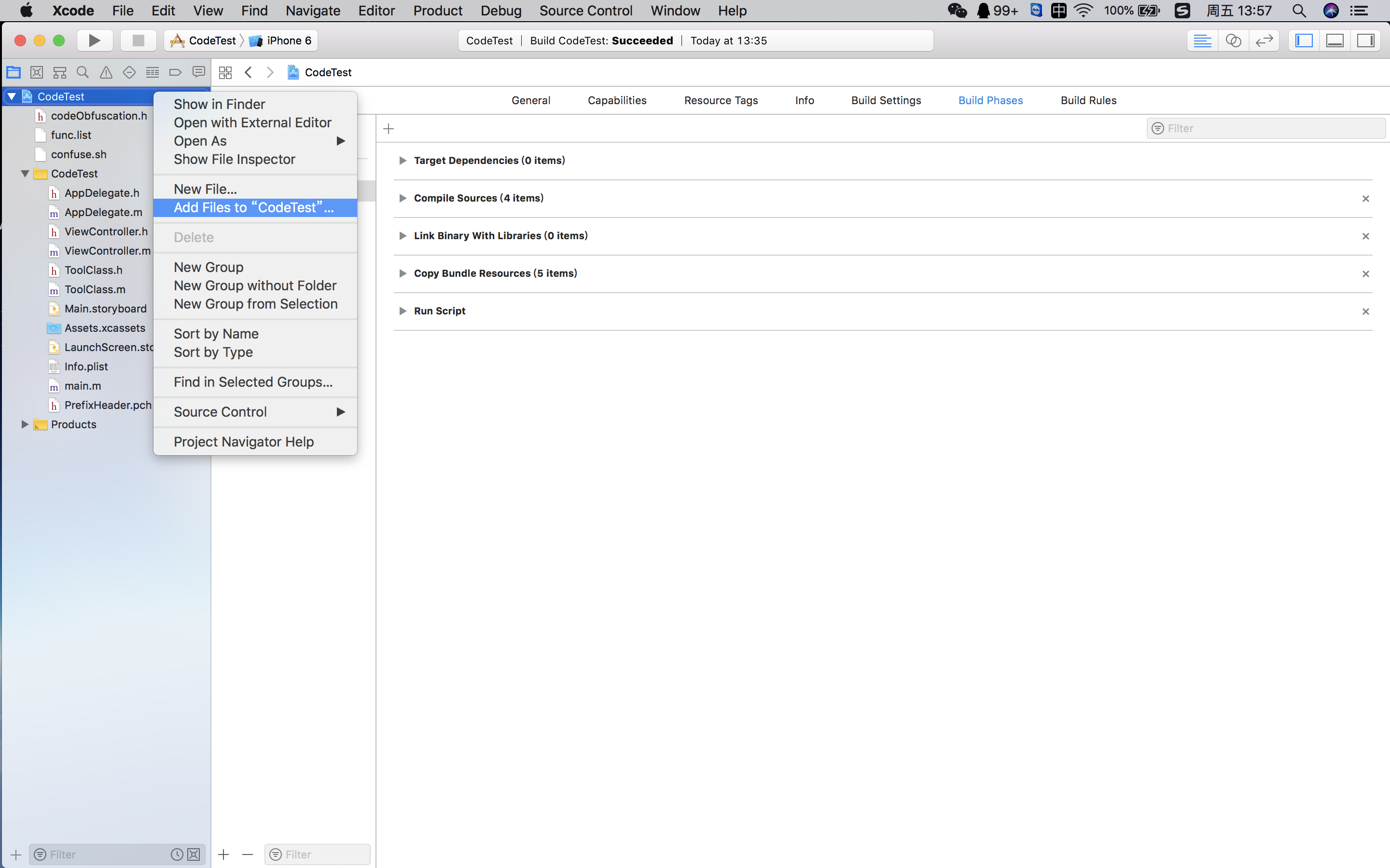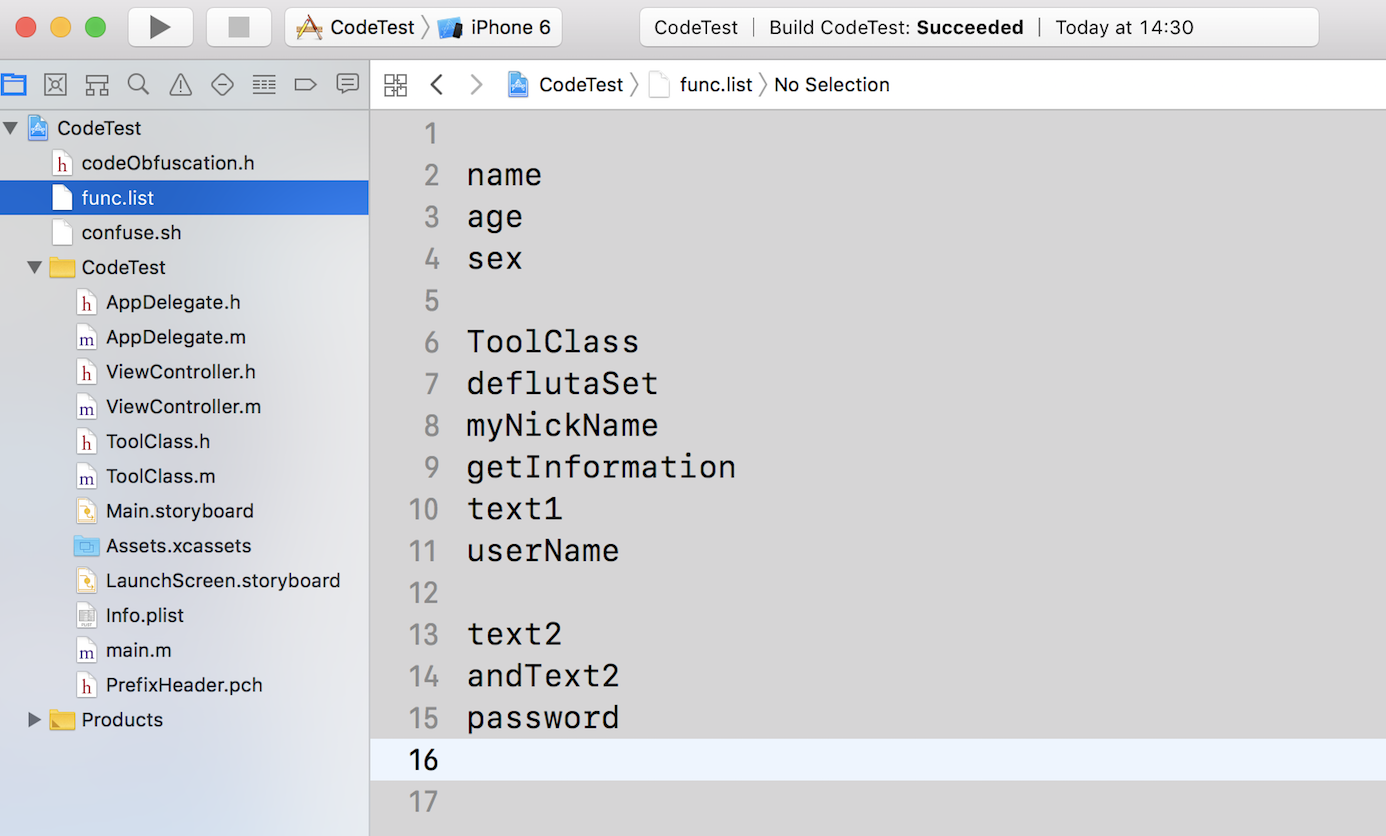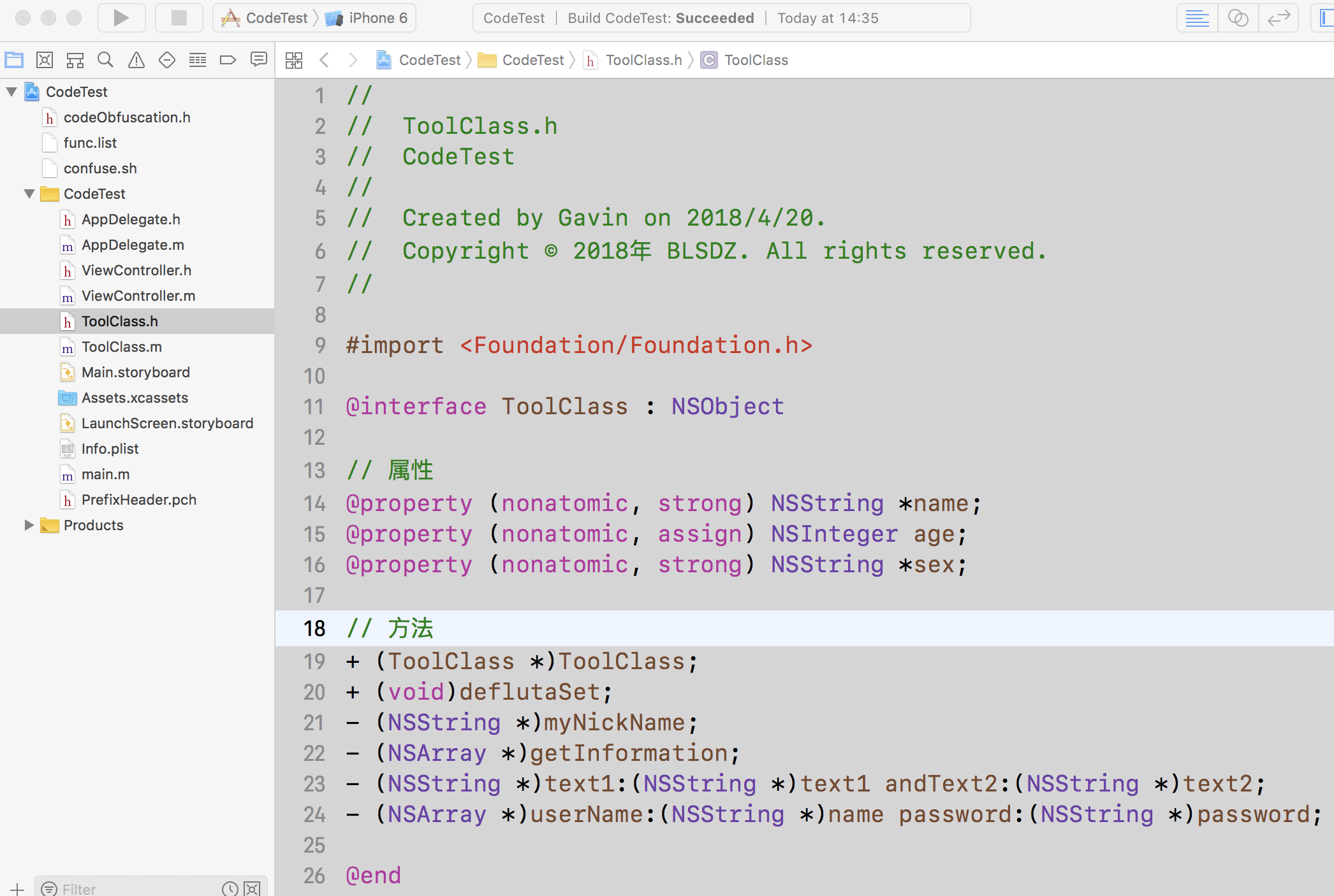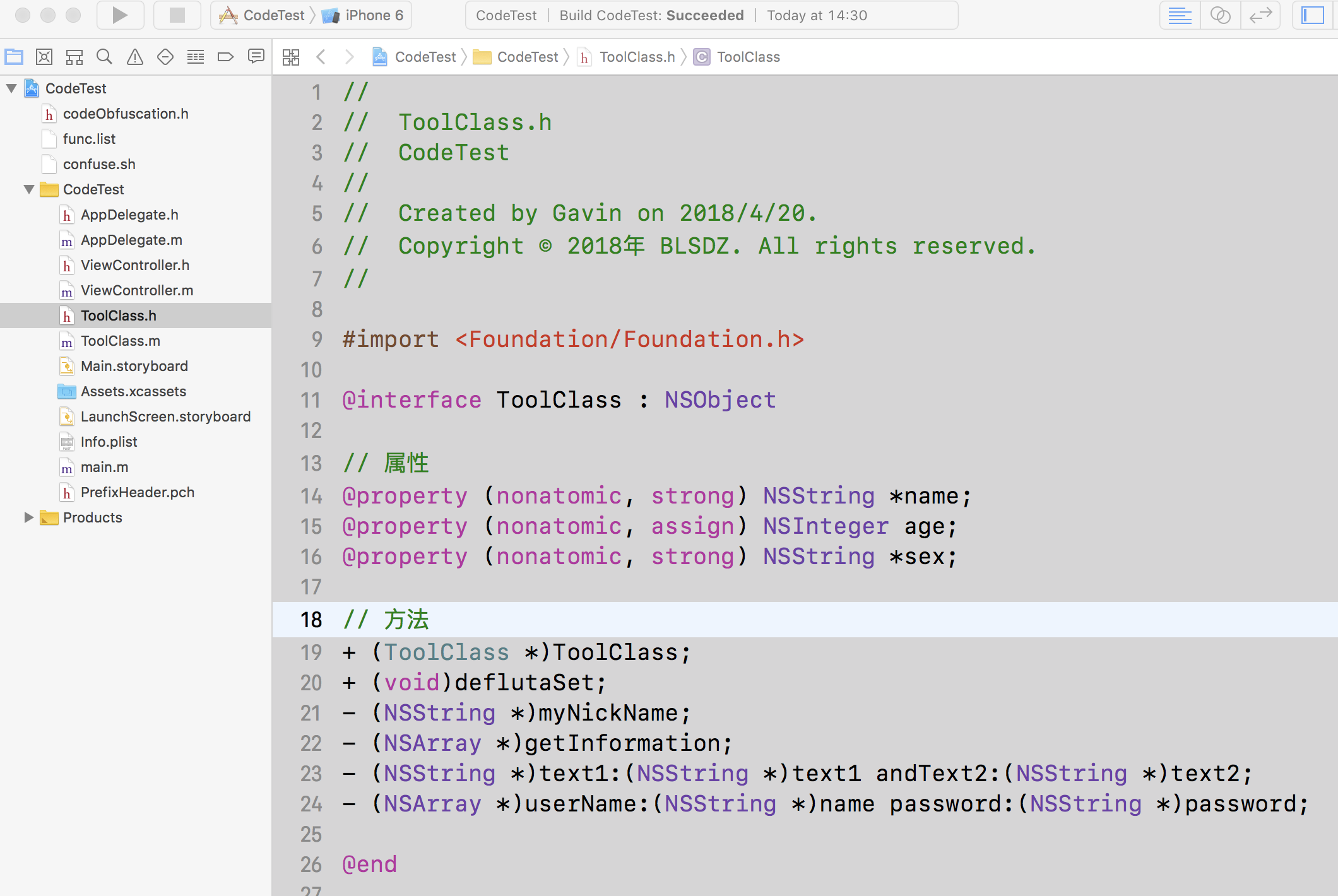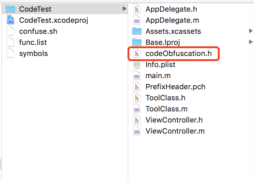 此时,我们再编译一下项目,然后在工程目录下,我们会多出一个codeObfuscation.h文件