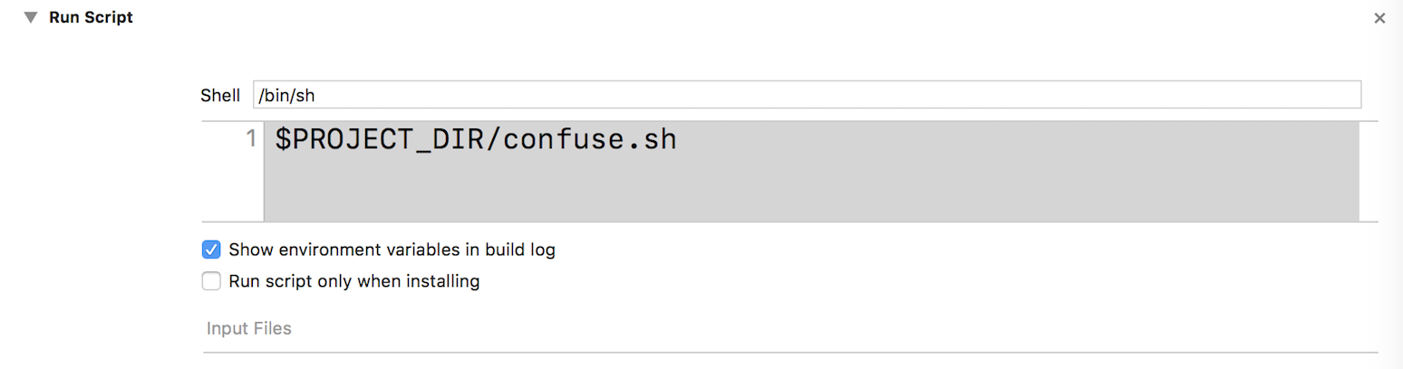 在里面添加 $PROJECT_DIR/confuse.sh ,这句命令的意思的应用每次启动的时候,都会先去跑我们confuse.sh 脚本