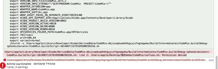 解决办法:切换到工程目录下,输入命令行 chmod 755 confuse.sh 给我们的脚本本间授权