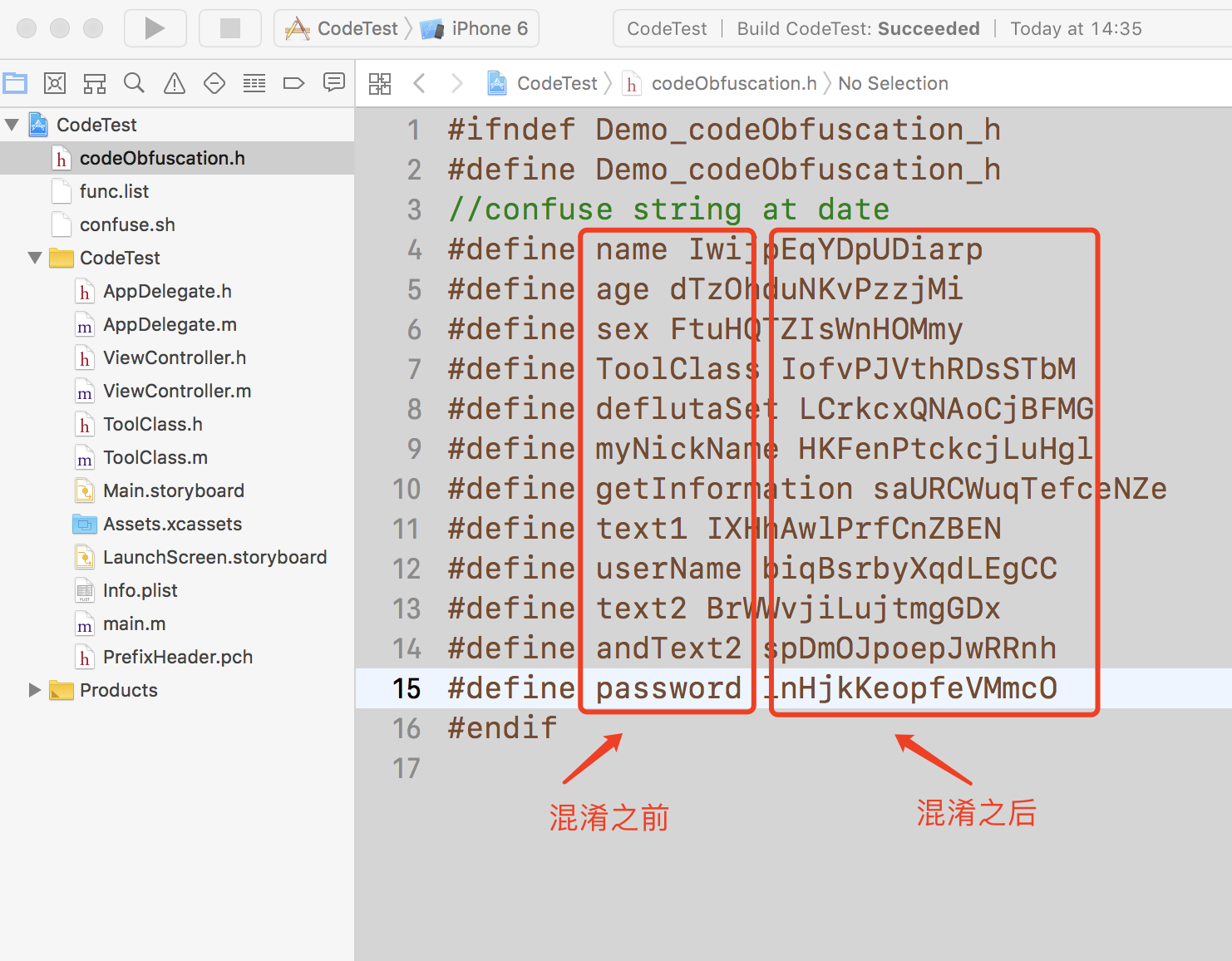 然后点击编译,这样子我们需要混淆的代码就已经混淆成功了。但是也不会印象到我们的阅读。这里是通过宏定义来修改的: