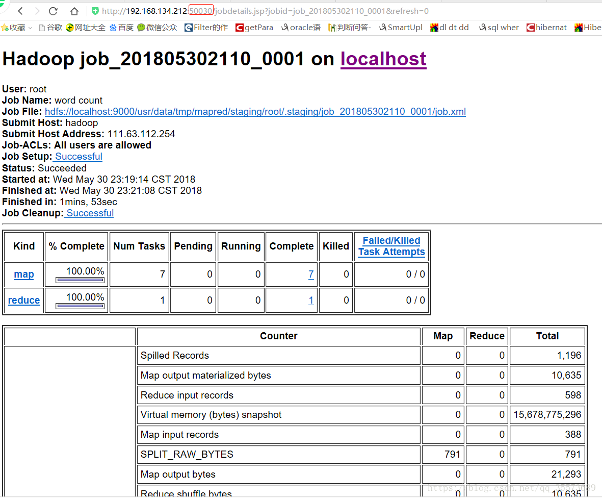 下面两幅图是一个页面可以用来实时监测map reduce的执行了多少