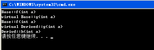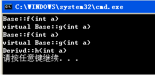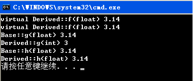}其中子类Derived中 vitual void f(float x) 是覆盖,而void g(int x) 和void h(float x)都是隐藏。