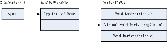 其中Derived中重新定义了基类的虚成员函数virtual void g(int a);