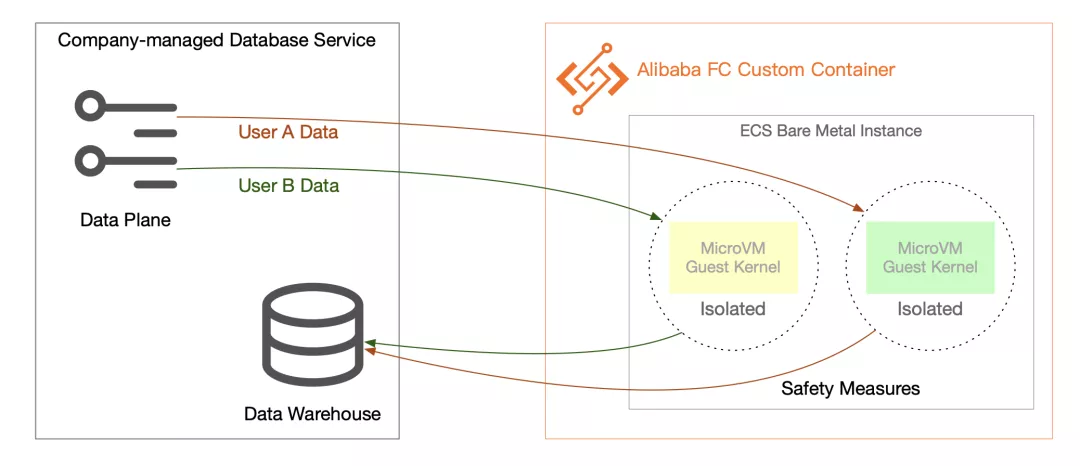 服务都依赖数据,而数据处理往往需要消耗大量资源来满足高效快速的数据变更请求。自定义镜像与其他函数计算运行时一样可以满足数据处理时的安全隔离,又同时保留了用户将数据处理部分的业务逻辑自由的打包成镜像的便捷能力。提供平滑迁移的同时满足了镜像启动的极低额外延时,满足了用户针对如数据库治理、万物物联等应用场景的安全,高效,弹性的数据处理需求。