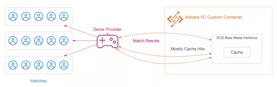 各类游戏内通常会设置日常任务等场景短时间集聚大量玩家同时需要战斗结算一类的数据处理,为了不让游戏玩家失去耐心,战斗数据校验通常需要在短短几秒内完成,且单个玩家的数据结算单位时间不能随着玩家数量增长而恶化。此类数据处理的业务逻辑通常繁杂且高度重复,将玩家数据处理逻辑打包至函数计算自定义镜像内便可以弹性满足短时间大量相似的玩家结算请求。