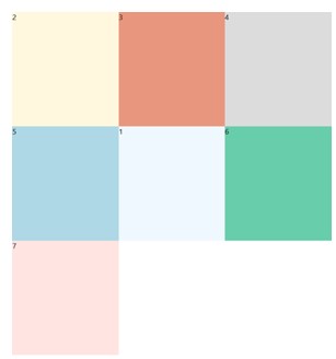 <controls:UniformGrid> <Border Background="AliceBlue" Grid.Row="1" Grid.Column="1"><TextBlock Text="1"/></Border> <Border Background="Cornsilk"><TextBlock Text="2"/></Border> <Border Background="DarkSalmon"><TextBlock Text="3"/></Border> <Border Background="Gainsboro"><TextBlock Text="4"/></Border> <Border Background="LightBlue"><TextBlock Text="5"/></Border> <Border Background="MediumAquamarine"><TextBlock Text="6"/></Border> <Border Background="MistyRose"><TextBlock Text="7"/></Border> </controls:UniformGrid>123456789