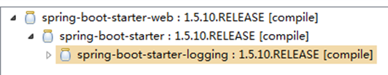 在spring-boot-starter 依赖中,添加了 spring-boot-starter-logging依赖