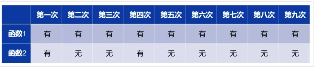 我们在控制台多次点击“测试”按钮,对这两个函数进行测试,判断其是否在日志中输出了“Test”,我们可以统计结果: