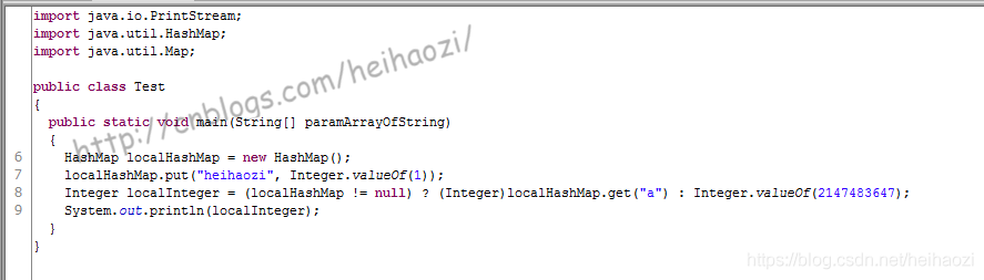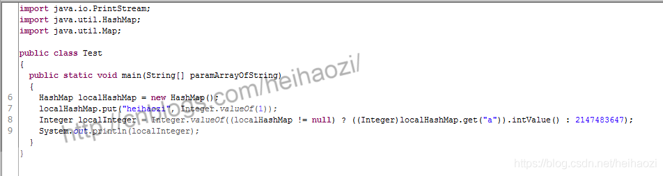 Integer i = map != null ? map.get("a") : Integer.valueOf(Integer.MAX_VALUE);