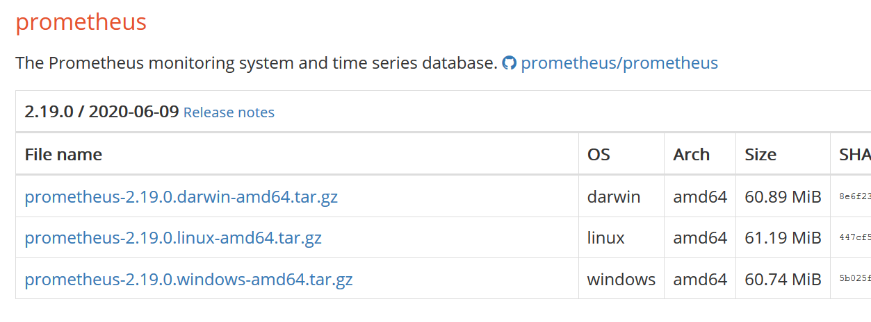 从官方网站(https://prometheus.io/download/)上找到最新版本的Prometheus Sevrer软件包,如下图: