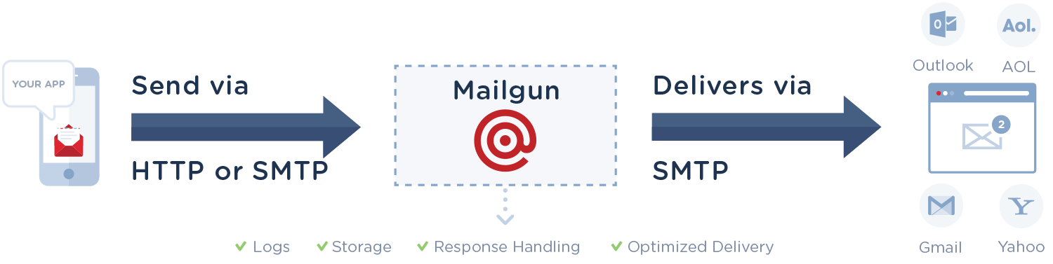 这是一个缩减版的生活中邮件发送过程。这三个步骤可以分别对应我们的邮件发送过程,假设从 [email protected] 发送邮件到 [email protected] :