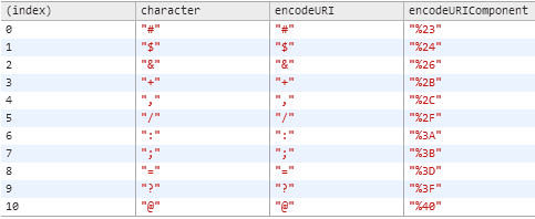记住使用 encodeURI()和encodeURIComponent()有11个字符不同。 它们是: # $ & + , / : ; = ? @ more discussion。