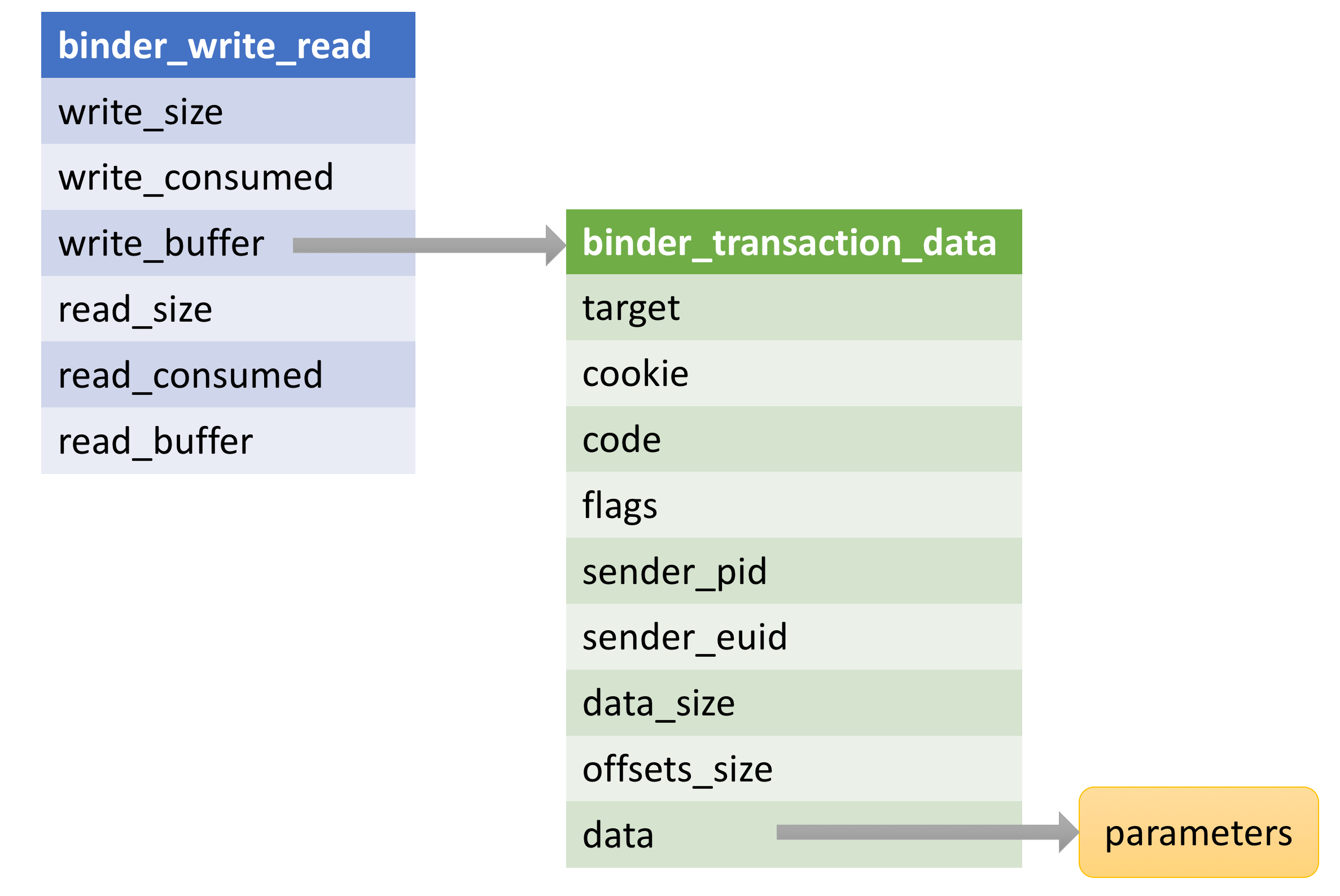 这其中,binder_write_read和binder_transaction_data这两个结构体最为重要,它们存储了IPC调用过程中的数据。关于这一点,我们在下文中会讲解。