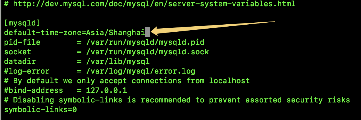 所以我们现在要把 MySQL 的时区先给改对,可以通过修改配置文件来实现(/etc/mysql/mysql.conf.d/mysqld.cnf),如下: