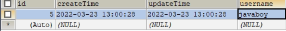 很简单的几个字段,createTime 是 datetime 类型,updateTime 是 Timestamp 类型。