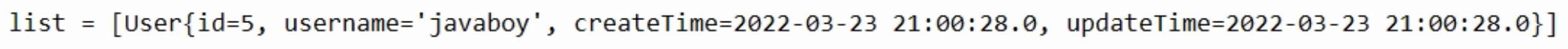 List<User> list = jdbcTemplate.query("select * from user", new BeanPropertyRowMapper<>(User.class));