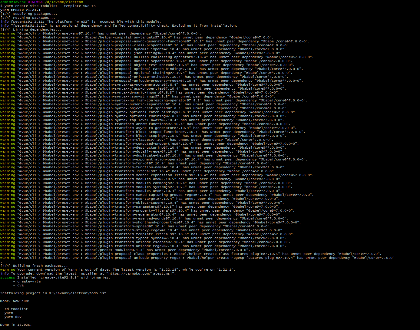 yarn create vite todolist --template vue-ts