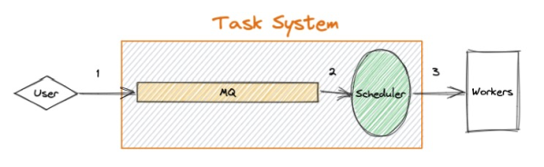 用户下发任务 - 进入队列 - 任务处理单元监听并获取消息 - 调度到实际 worker 执行