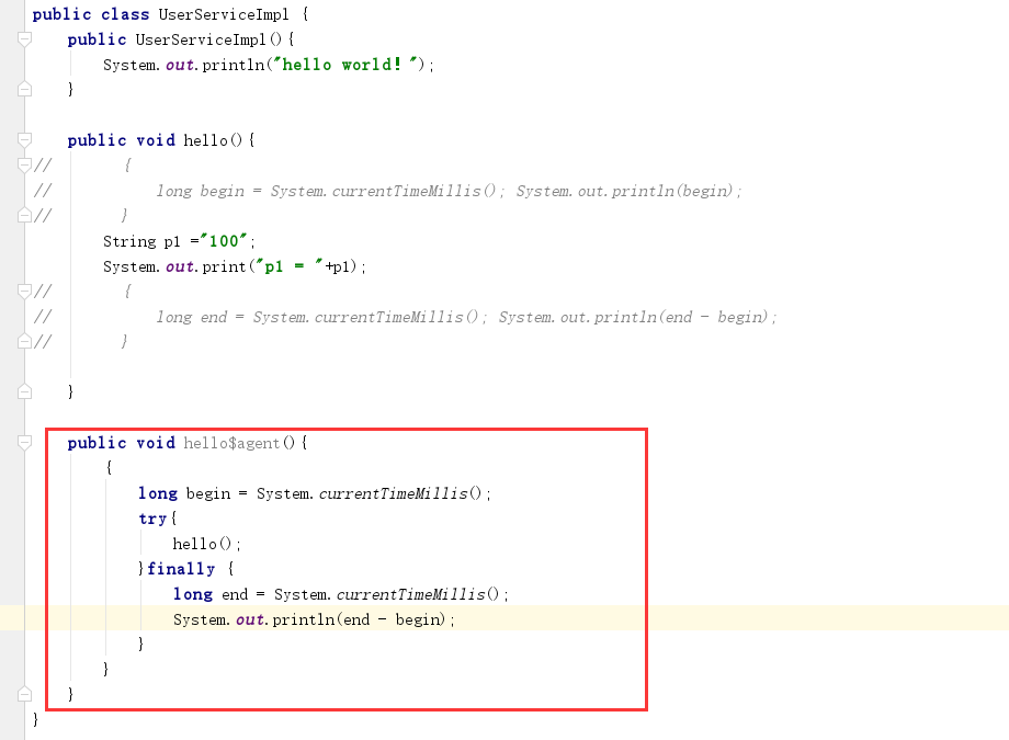 1562479947074 //UserServiceImpl被插桩启动开始的hello