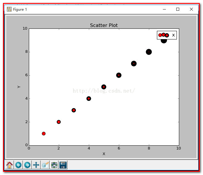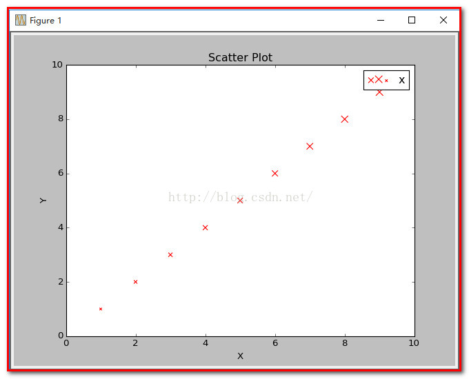 ax1.scatter(x,y,s=sValue,c='r',marker='x')