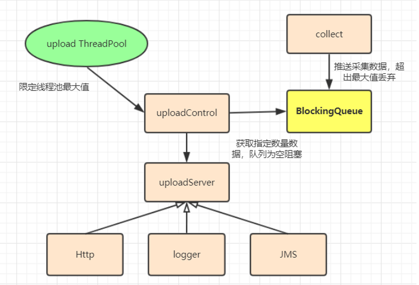 上传流程为什么不直接采用线程池直接控制数据发送,而非得在自己去维护一个阻塞队列呢?