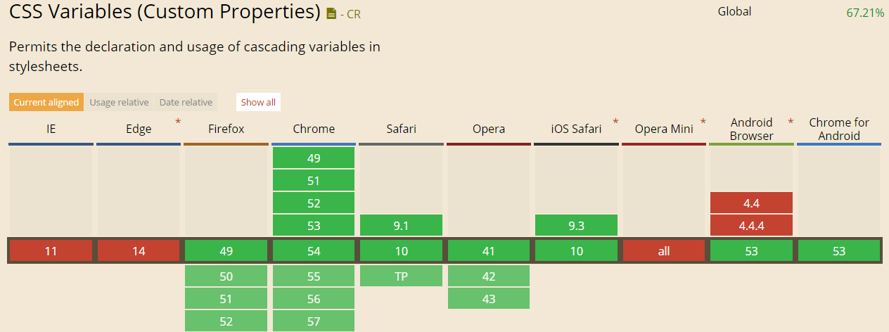 当然,上述示例正常显示的前提是你使用的浏览器已经支持了 CSS 变量: