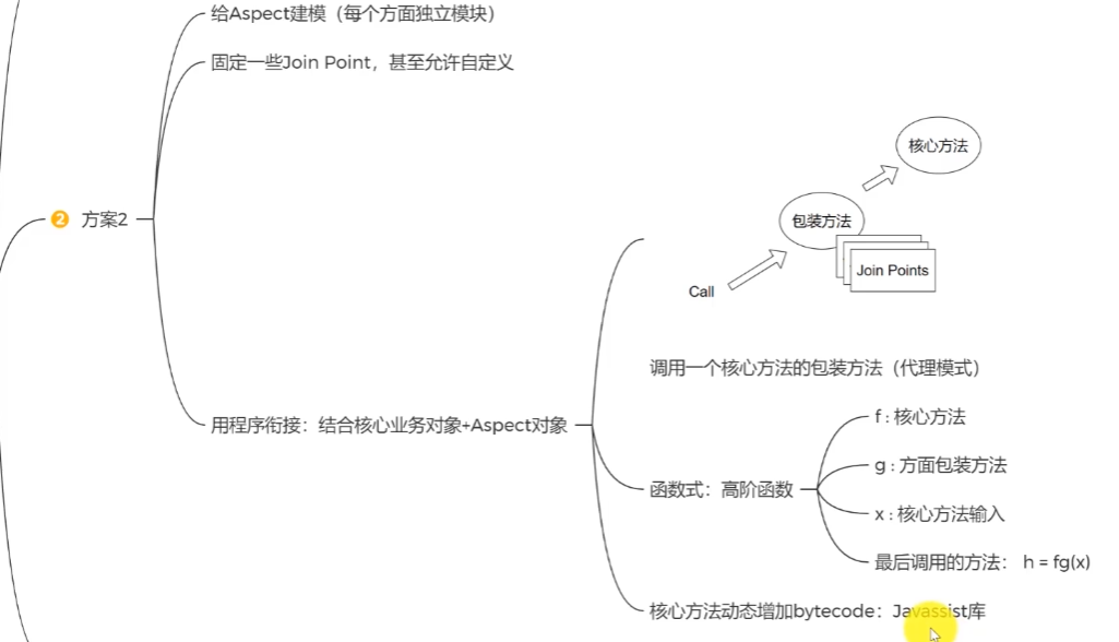 1,可以使用joinPoint方法实现(每个方面是独立的模块)