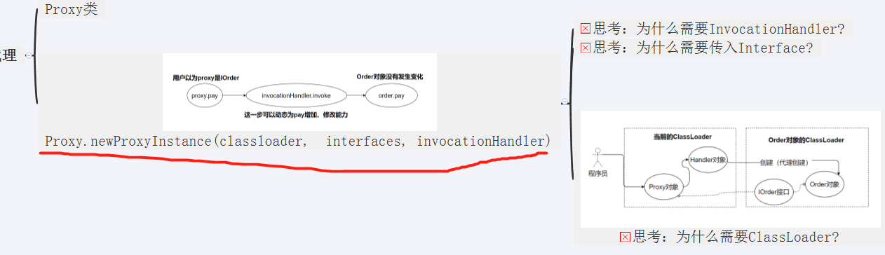 **ClassLoader:**被代理类和代理类,要使用相同的加载器,因为代理类和被代理类是基层了同一个接口,所以要使用相同的加载器,所以要将加载接口的加载器,作为参数传入到代理类的方法中。