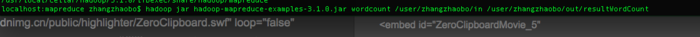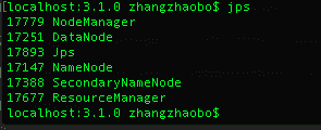 localhost:mapreduce zhangzhaobo$ hadoop jar hadoop-mapreduce-examples-3.1.0.jar wordcount /user/zhangzhaobo/in /user/zhangzhaobo/out/resultWordCount