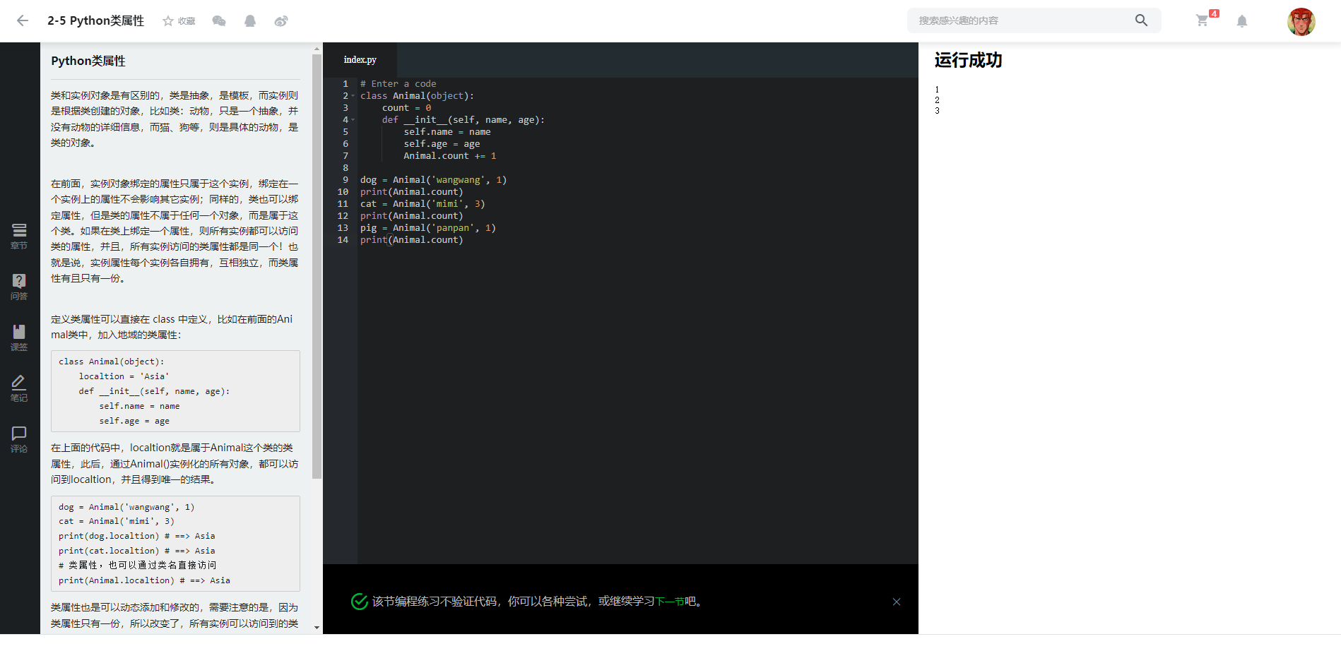 实例对象绑定的属性只属于这个实例,绑定在一个实例上的属性不会影响其它实例;同样的,类也可以绑定属性,但是类的属性不属于任何一个对象,而是属于这个类。如果在类上绑定一个属性,则所有实例都可以访问类的属性,并且,所有实例访问的类属性都是同一个!也就是说,实例属性每个实例各自拥有,互相独立,而类属性有且只有一份。