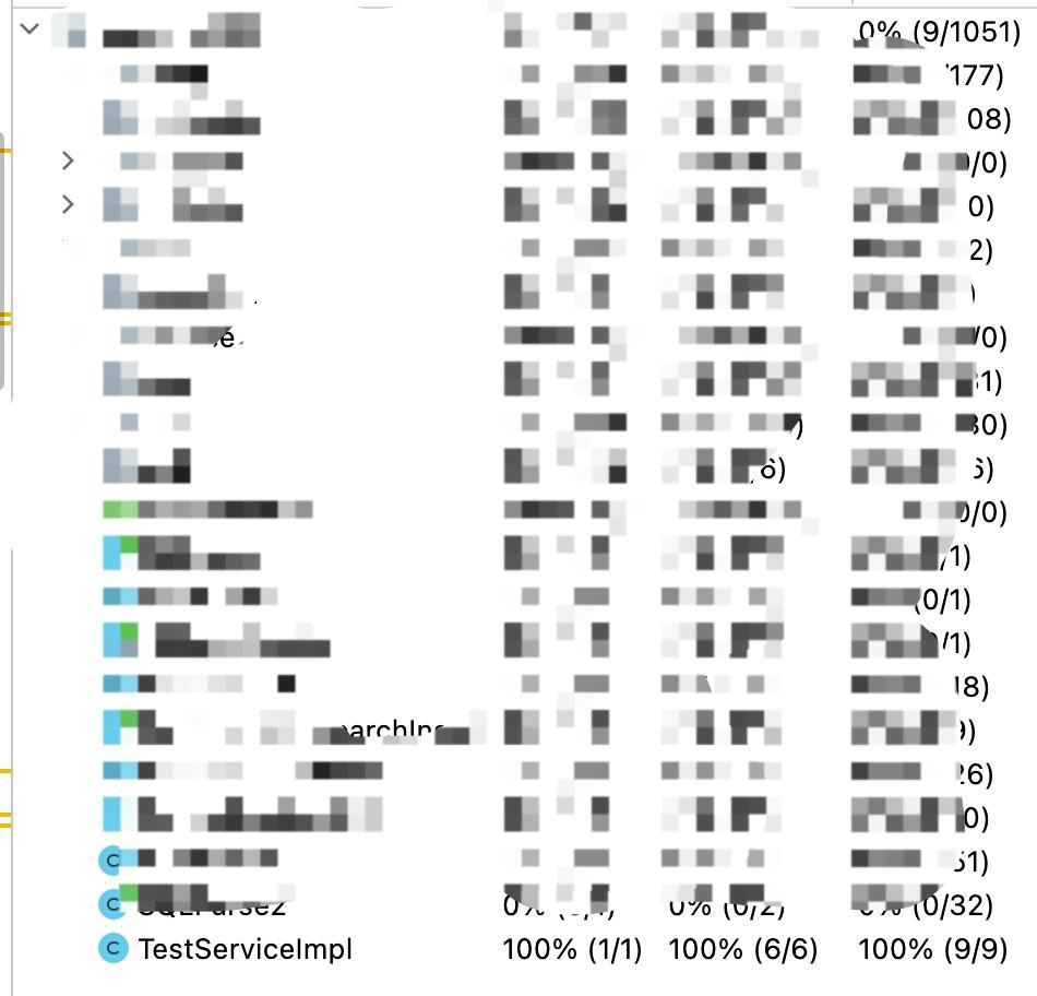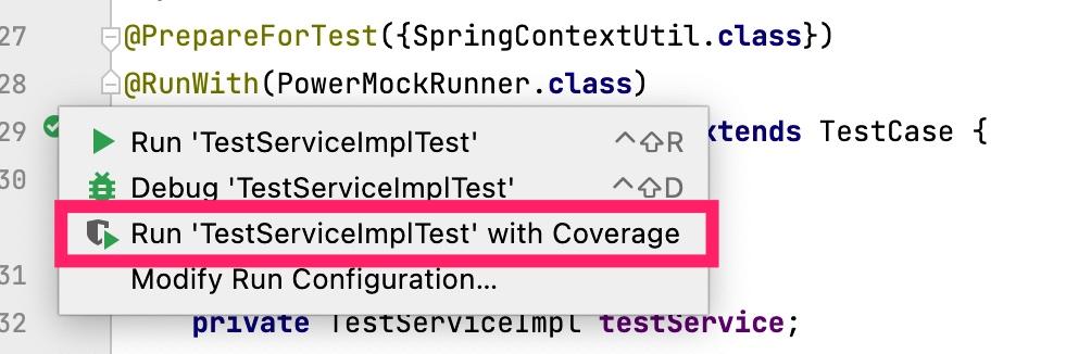 使用Idea默认的Coverage功能,运行后会展示单元测试的覆盖率: