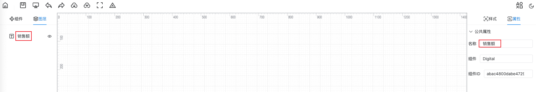 在右边的编辑页面我们看到有样式和属性,所有的组件都包含基础样式位置大小,包括组件的上下边距和宽高,属性包含公共属性,其中组件和组件ID无法修改,主要是展示来看的,名称可以修改,名称属性主要是展示在图层上,修改名称后图层上会响应的显示修改后的名称。