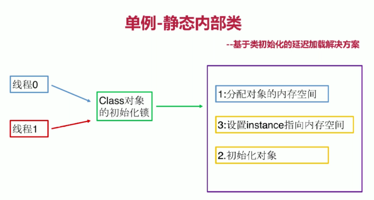 *** 原理:类加载的延迟,类初始化锁只能被一个线程获取。**