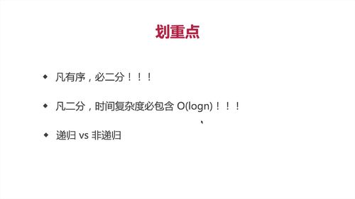 这几节主要是讲二分查找是啥,时间复杂度,两种实现方式和比较。