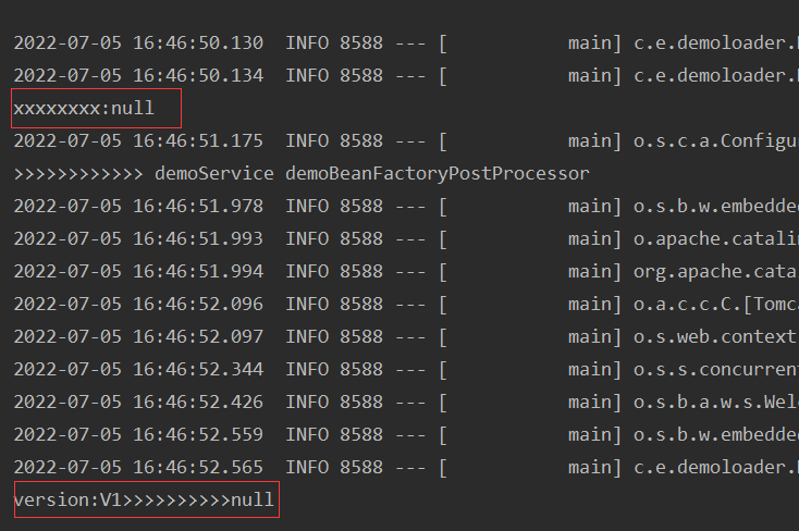 System.out.println(">>>>>>>>>>>> demoService demoBeanFactoryPostProcessor");