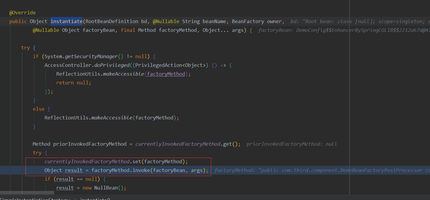 此时factoryBean就必须一定得有值,否则会报错。而这个factoryBean就是示例中的DemoConfig 。这就意味着DemoConfig在DemoBeanFactoryPostProcessor在实例化前,就得先创建好。而此时