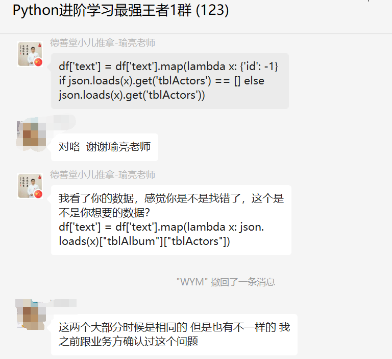 最后感谢粉丝【WYM】提问,感谢【瑜亮老师】、【郑煜哲·Xiaopang】、【隔壁山楂】给出的思路和代码解析,感谢【dcpeng】、【猫药师Kelly】、【冫马讠成】等人参与学习交流。