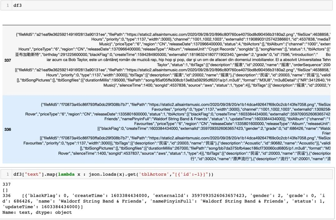 df['text'] = df['text'].map(lambda x: {'id': -1} if json.loads(x).get('tblActors') == [] else json.loads(x).get('tblActors'))
