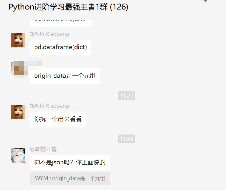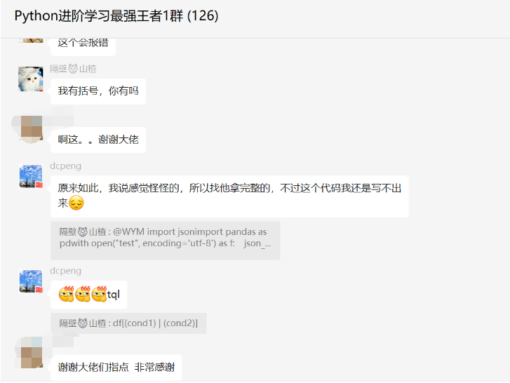 最后感谢粉丝【WYM】提问,感谢【郑煜哲·Xiaopang】、【隔壁山楂】给出的思路和代码解析,感谢【dcpeng】等人参与学习交流。