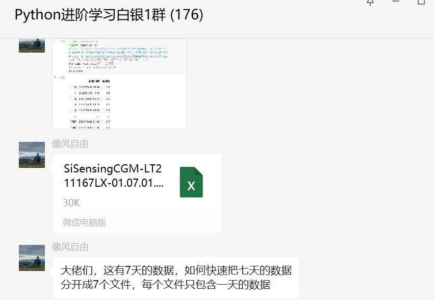 国庆期间在Python白银交流群【像风自由】问了一个自动化办公处理的问题,提问截图如下: