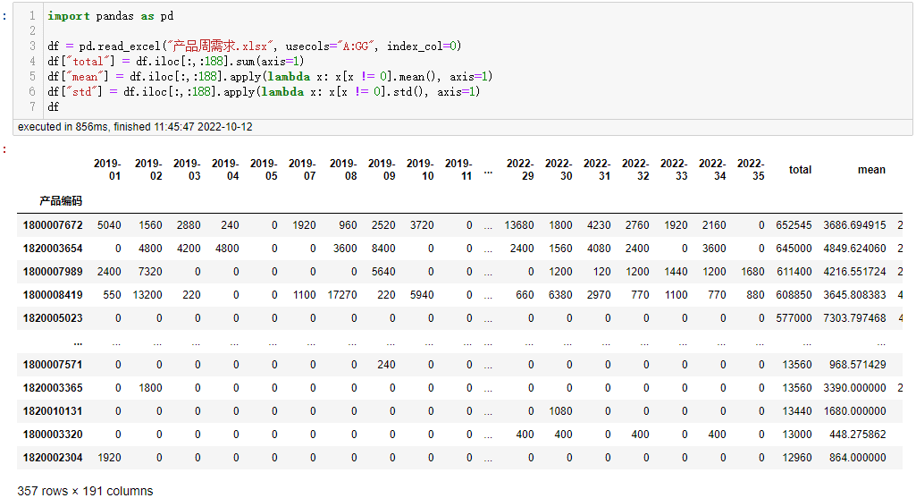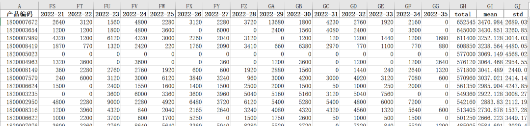 df = pd.read_excel('产品周需求.xlsx', usecols='A:GG', index_col=0)