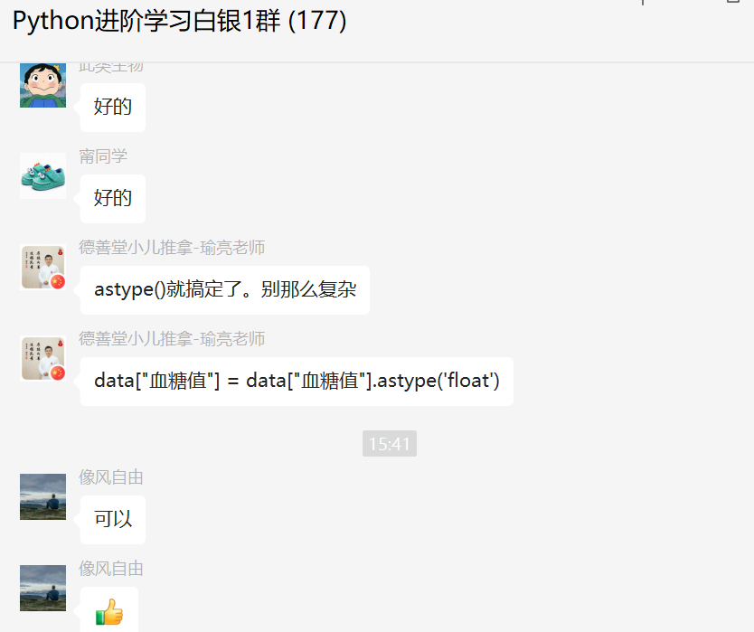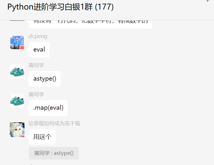 这里【dcpeng】一开始想到的是eval,后来发现想复杂了,其实使用astype()就可以了。【甯同学】和【论草莓如何成为冻干莓】都想到了。