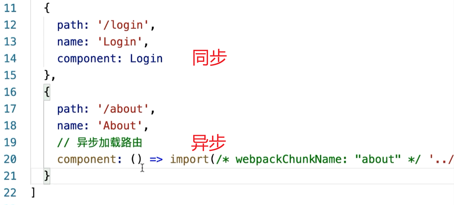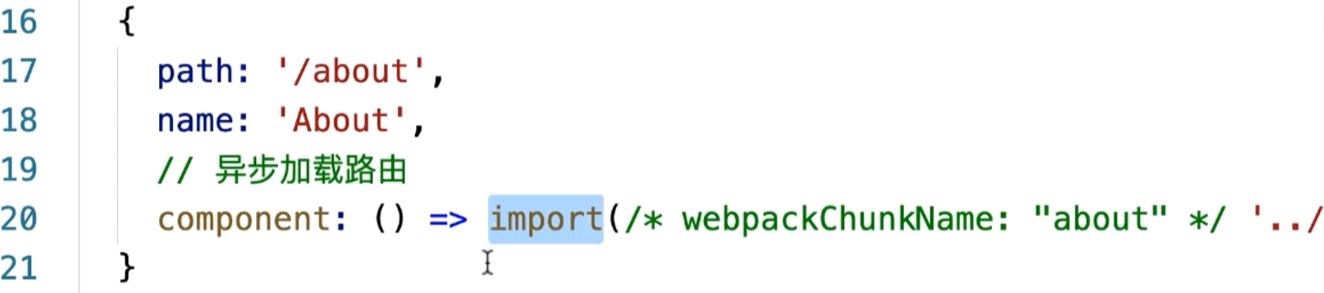 实际上 import 这种语法叫做一个懒加载的语法,或者叫做异步加载路由。